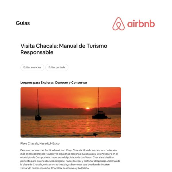 Through the Airbnb Guidebook: “Responsible Tourism Manual”, Visit Chacala invites you to learn about the natural attractions, local customs, cultural expressions, gastronomy, services and most importantly: the care and conservation of this beautiful destination. As a visitor, your participation is key to equitable and sustainable local development that protects the identity and culture of Chacala.
