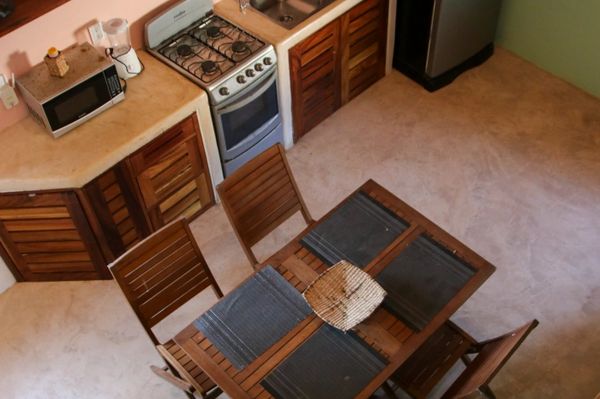 The carport is for one car and the first thing you will see is the outdoor living room. Open the doors and enter your beach house. It is important to mention that Canary 1's door only locks from the inside, but don't worry! The town of Chacala is very quiet and safe.
